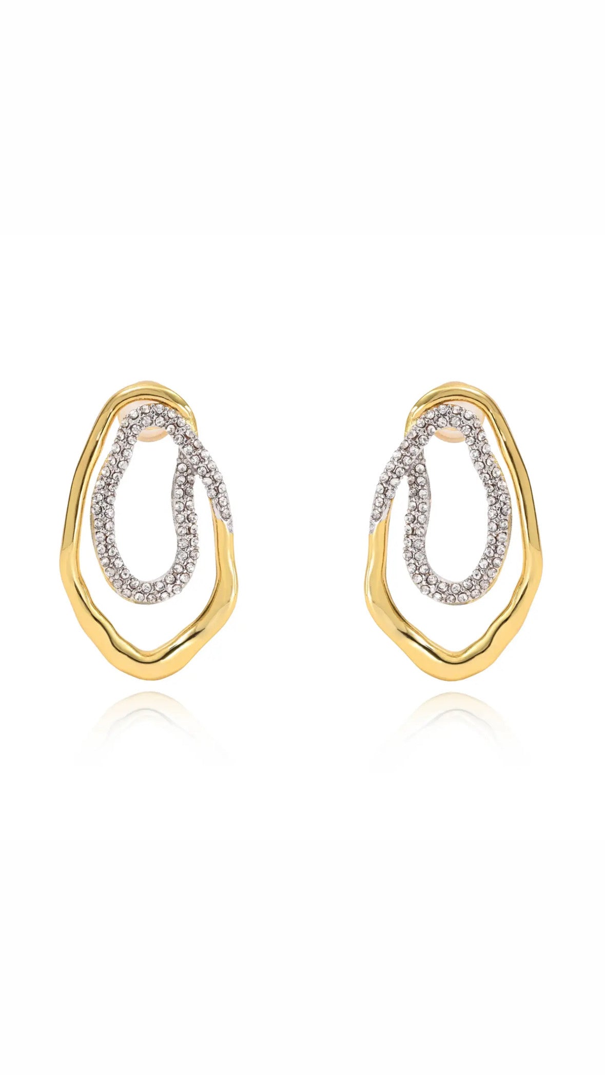 Add a touch of elegance to any outfit with our Harper Two Tone Pave Earrings. The stunning two-toned design, adorned with sparkling pave diamonds, will make you stand out in any crowd. Perfect for a special occasion or everyday wear. Elevate your style with Harper! 18K Gold Plated over Stainless Steel CZ Stones Hypoallergenic Water & Tarnish Resistant