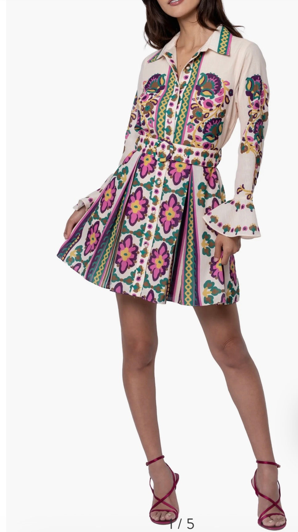 Floral Smocked Bell-Sleeve Button-Front Midi Dress